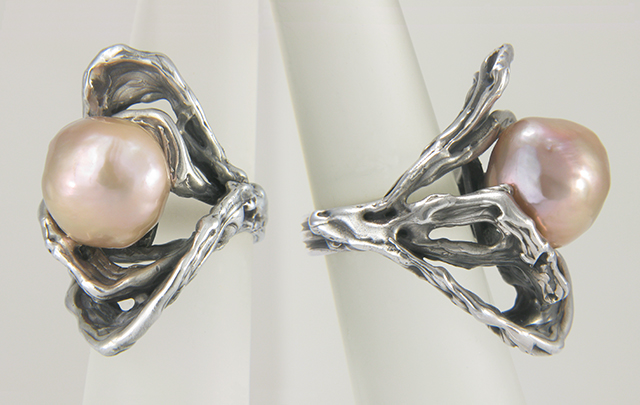 Baroque Pearl ring set in black Rhodium-plated Silver